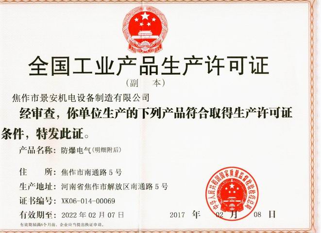 ¹¤Òµ²úÆ·Éú²úÐí¿ÉÖ¤