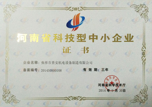 河南省科技型中小企业证书