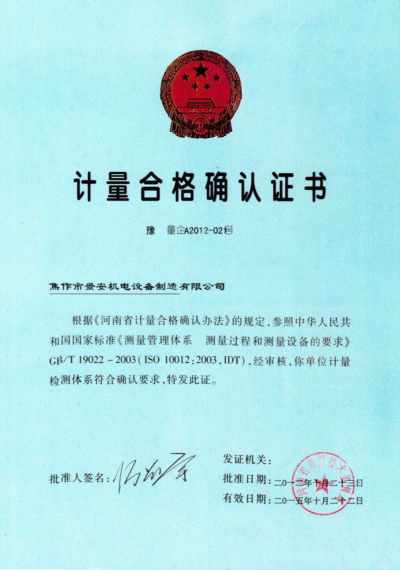 计量合格确认证书