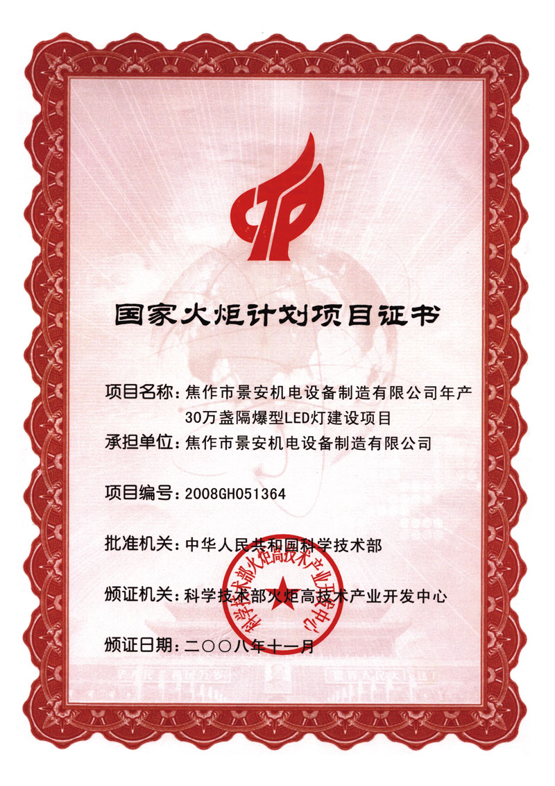 LED火炬计划证书